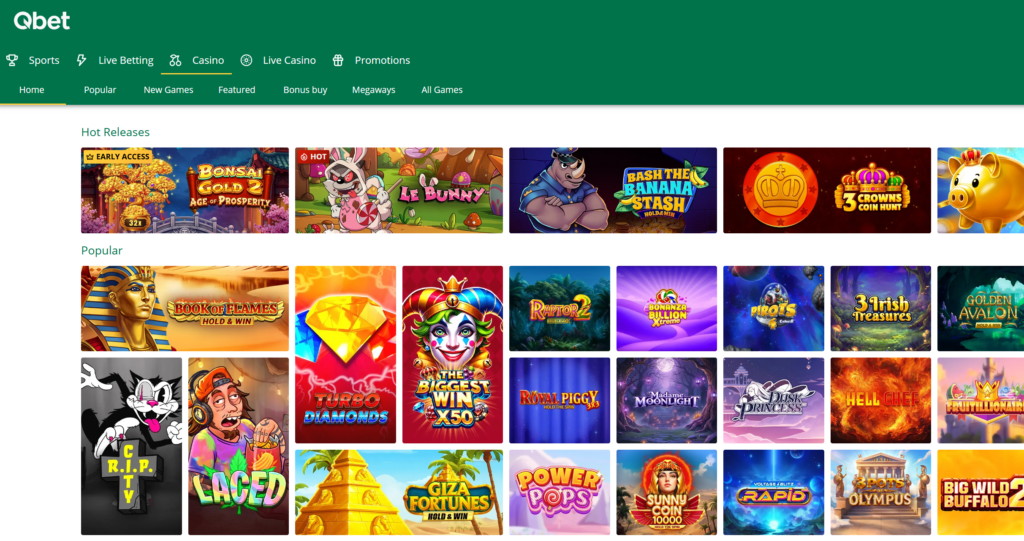 Mit über 7.400 Spielen von 135 Software-Anbietern bietet QBet eine beeindruckende Bibliothek, die mit viel größeren Casinos konkurriert. Ich verbrachte beträchtliche Zeit damit, die Spielautomaten-Sektion zu erkunden, und fand alles von klassischen Dreiwalzenspielen bis zu modernen Megaways-Spielen. Beliebte Franchises wie Book of Dead, Big Bad Wolf und Gonzo’s Quest sind gut vertreten.