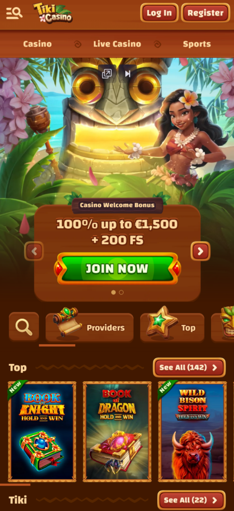 TikiCasino bietet einen frischen Ansatz, indem es Sportwetten mit Casinospielen unter einem fußballthematischen Branding verbindet. Die Spielauswahl ist solide, die Oberfläche sauber und der Support reaktionsschnell.